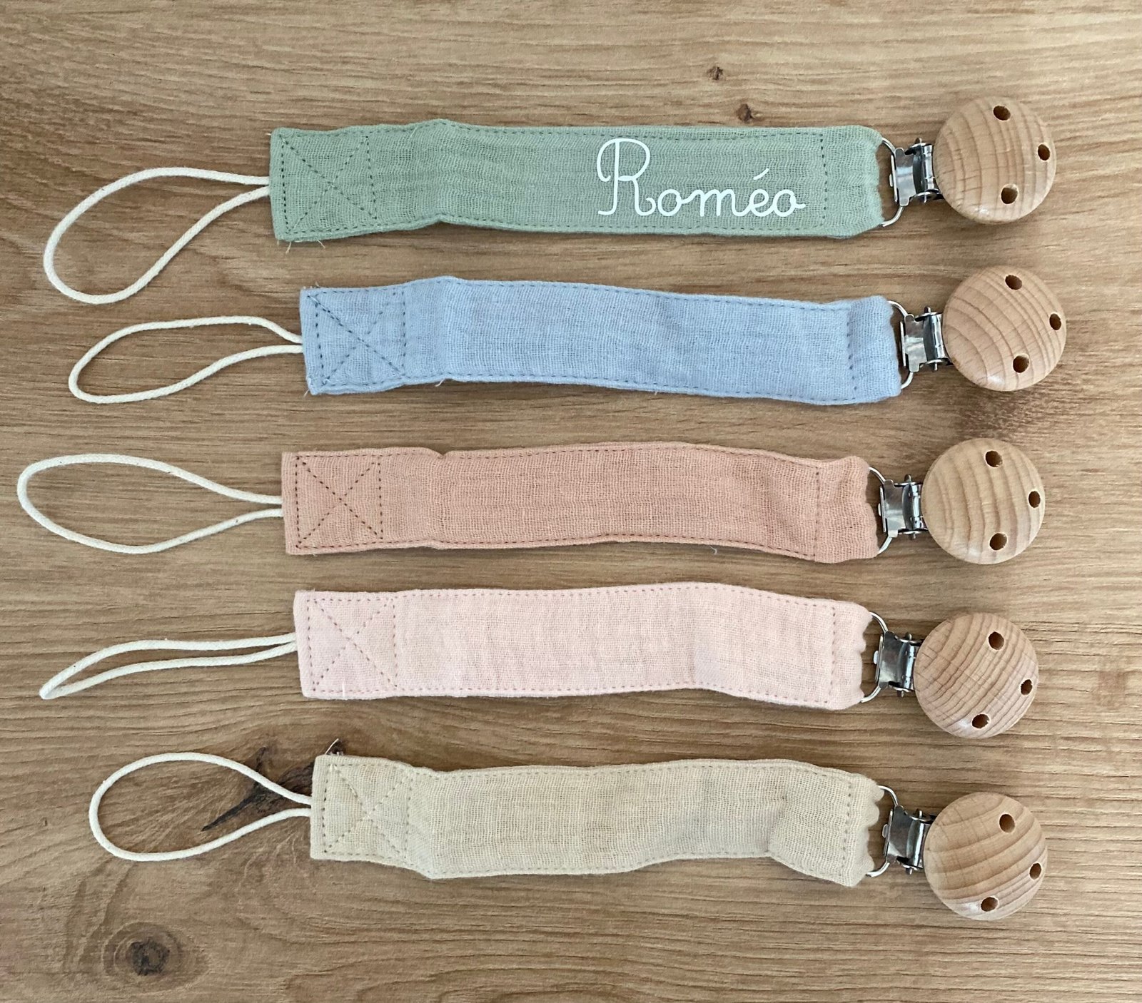 Composition : cordon en coton doux, clip en bois de hêtre naturel non traité.