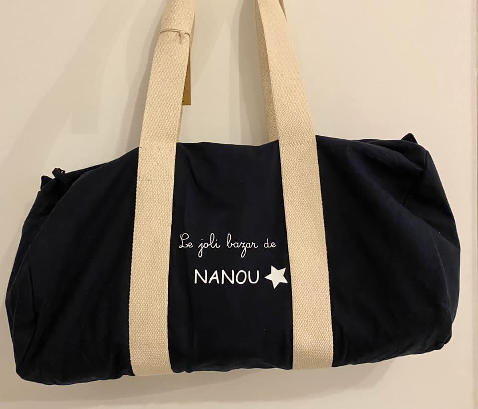 Sac personnalisé brodé main en tissu durable, fabrication artisanale belge.